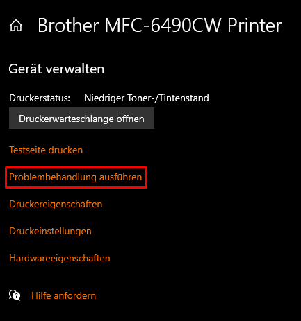 <figure><img src="https://1993141339-files.gitbook.io/~/files/v0/b/gitbook-x-prod.appspot.com/o/spaces%2FHSmnP774EiOo2qQQ8FwO%2Fuploads%2F38tDgZXvCwUxO9d4QHZu%2Fimage.png?alt=media&#x26;token=309520a1-011d-4f1b-9fe6-8a7dcb876526" alt=""><figcaption><p>"Problembehandlung ausführen" wählen</p></figcaption></figure>